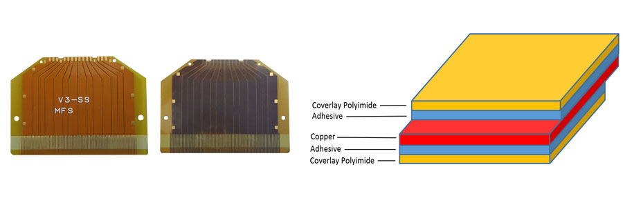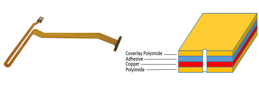 Flexible printed circuit consists of conducting layers made of copper foil and insulating layers dielectric that are typically laminate together with polyimide / PET / PEN / Liquid Crystal Polymer (LCP).