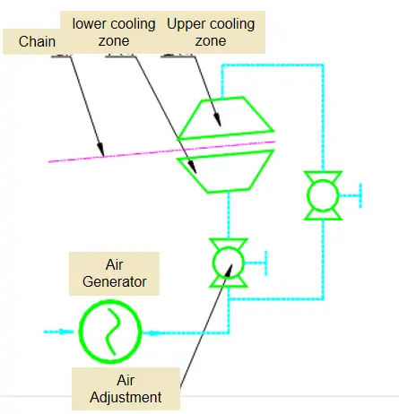 Forced air cooling system, can meet lead-free work art of cooling slope requirement