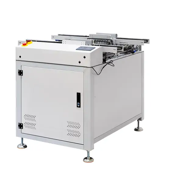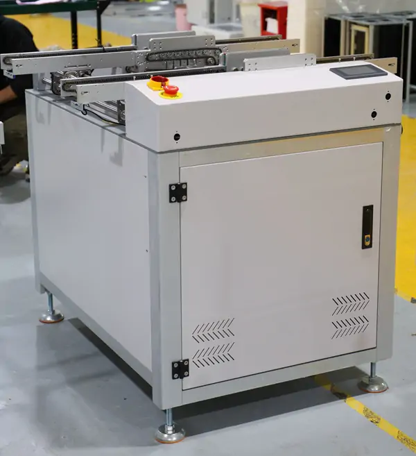 This machine allows good and bad board be separated after AOl, during testing,the good boards can continue to run without interrupting